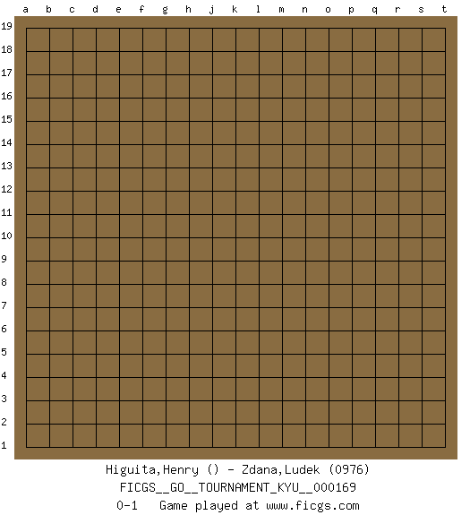 Last move : 0-1 2016 September 1 14:46:51 [Event "FICGS__GO__TOURNAMENT_KYU__000169"] [Site "FICGS"] [Date "2016.09.01"] [Round "1"] [Black "Higuita,Henry"] [White "Zdana,Ludek"] [Result "0-1"] [Rating 2 "0976"] 0-1 Here are the names of the openings (joseki) played in the four corners : Player White won this Go (weiqi, baduk) game. Follow this game move after move (download)Keep away from thickness. (Anonymous) A generalist learns less and less about more and more until he knows nothing about everything. (Author unknown)