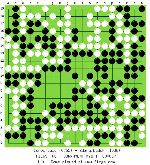 Last move : 1-0 2017 December 2 18:14:41 [Event "FICGS__GO__TOURNAMENT_KYU_I__000067"] [Site "FICGS"] [Date "2017.04.12"] [Round "1"] [Black "Flores,Luis"] [White "Zdana,Ludek"] [Result "1-0"] [Rating 1 "0762"] [Rating 2 "1086"] 1.d4 q16 2.d16 q4 3.p17 q17 4.p16 m17 5.o18 j17 6.g17 h15 7.g15 m15 8.n14 m14 9.m13 q10 10.k10 h13 11.g14 d13 12.k16 j16 13.k15 l14 14.l13 k14 15.j14 h14 16.j13 j15 17.k13 g12 18.g13 e14 19.e15 b13 20.h11 h12 21.g11 f12 22.f11 e11 23.d10 d11 24.e10 f3 25.e3 c6 26.d6 b4 27.c5 b5 28.c4 b3 29.k4 j3 30.j2 h2 31.k2 k3 32.j4 l3 33.l2 m2 34.n2 m3 35.m1 n3 36.o2 p3 37.o4 o3 38.p2 q2 39.r2 q1 40.r1 q3 41.r3 r4 42.s4 s5 43.t4 t2 44.s1 t3 45.s3 r6 46.s6 t5 47.s7 r7 48.q5 r5 49.s8 r9 50.r8 q8 51.r10 s9 52.s10 r12 53.r11 q11 54.s12 t9 55.q12 r13 56.s13 s11 57.t11 t10 58.s11 r14 59.s14 s15 60.r15 q15 61.s16 r16 62.t15 r15 63.s17 s18 64.r18 t14 65.t13 t18 66.r17 q18 67.q19 p19 68.r19 t16 69.t17 p18 70.c7 b6 71.p12 n16 72.h3 g3 73.h4 g2 74.p15 o17 75.n18 m18 76.c2 b7 77.q14 n19 78.f4 n17 79.c10 n13 80.n12 p14 81.e2 l1 82.q13 o19 83.b9 c8 84.d7 b8 85.b2 a8 86.c14 a3 87.c13 c12 88.h18 j18 89.d14 e13 90.m6 c17 91.b15 e18 92.d17 d18 93.b17 c16 94.b16 c18 95.b18 f17 96.f16 g18 97.g19 f19 98.f18 s19 99.t19 g18 100.h19 h17 101.q9 j19 102.p9 b14 103.c15 b12 104.e17 f15 105.f18 a15 106.f14 g16 107.l5 f17 108.b19 f13 109.f15 o14 110.o13 n15 111.p7 q7 112.p8 p5 113.j12 o6 114.d8 n7 115.o5 n5 116.n6 o7 117.n4 p6 118.n9 m8 119.l8 l9 120.m7 g4 121.g5 f5 122.e4 h5 123.g6 j1 124.n8 m9 125.a16 l7 126.k8 k6 127.j5 l4 128.k5 l6 129.m5 a14 130.p13 n13 131.a2 c9 132.b10 d9 133.e9 p4 134.m4 p11 135.n14 n10 136.o8 n13 137.o12 c19 138.n14 t8 139.j6 n13 140.c3 f2 141.n14 p10 142.t7 n13 143.o10 n14 144.o11 e1 145.d1 f1 146.a9 a11 147.a10 b11 148.k1 l1 149.n1 p1 150.h6 c11 151.k7 t6 152.j11 pass 153.pass pass 154.m10 pass 155.n11 1-0 Here are the names of the openings (joseki) played in the four corners : Corner q16 : q16 p17 Hoshi (Hwajeom, Seongjeom, Xingwei`) 4-4 Point. The star or hoshi (4-4) point, emphasizing influence at the potential expense of territory. Corner d16 : d16 j17 Hoshi (Hwajeom, Seongjeom, Xingwei`) 4-4 Point. The star or hoshi (4-4) point, emphasizing influence at the potential expense of territory. Corner d4 : d4 f3 Hoshi (Hwajeom, Seongjeom, Xingwei`) 4-4 Point. The star or hoshi (4-4) point, emphasizing influence at the potential expense of territory. Ikken Kakari (Hankan Keolch'im, Yi Gua`jiao~, 1-Space Low Approach). White 2 is the standard approach move to the 4-4. Player Black won this Go (weiqi, baduk) game. Follow this game move after move (download)Ikken tobi is never wrong. (Anonymous) Whenever people agree with me, I always feel I must be wrong. (Oscar Wilde)