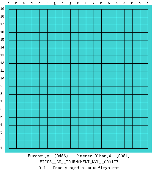 Last move : 0-1 2017 August 19 16:7:21 [Event "FICGS__GO__TOURNAMENT_KYU__000177"] [Site "FICGS"] [Date "2017.07.20"] [Round "1"] [Black "Puzanov,Vasyl"] [White "Jimenez Alban,Xavier Miguel"] [Result "0-1"] [Rating 1 "0486"] [Rating 2 "0081"] 0-1 This go game has been lost on time (started : 2017.07.20 10:8:5) Here are the names of the openings (joseki) played in the four corners : Player White won this Go (weiqi, baduk) game. Follow this game move after move (download)Don't make a play adjacent to a cutting-point. (Anonymous) The hypothalamus is one of the most important parts of the brain, involved in many kinds of motivation, among other functions. The hypothalamus controls the 'Four Fs: Fighting, Fleeing, Feeding and Mating. (Unknown author)